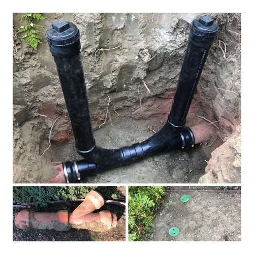 Here’s why installing a two-way cleanout is a game-changer for homeowners: Versatile Maintenance Options: The dual-directional design allows plumbers to inspect and address clogs in front of your house, but also the portion of your sewer pipe that runs under your house. All without having to enter your house with dirty equiptment.
